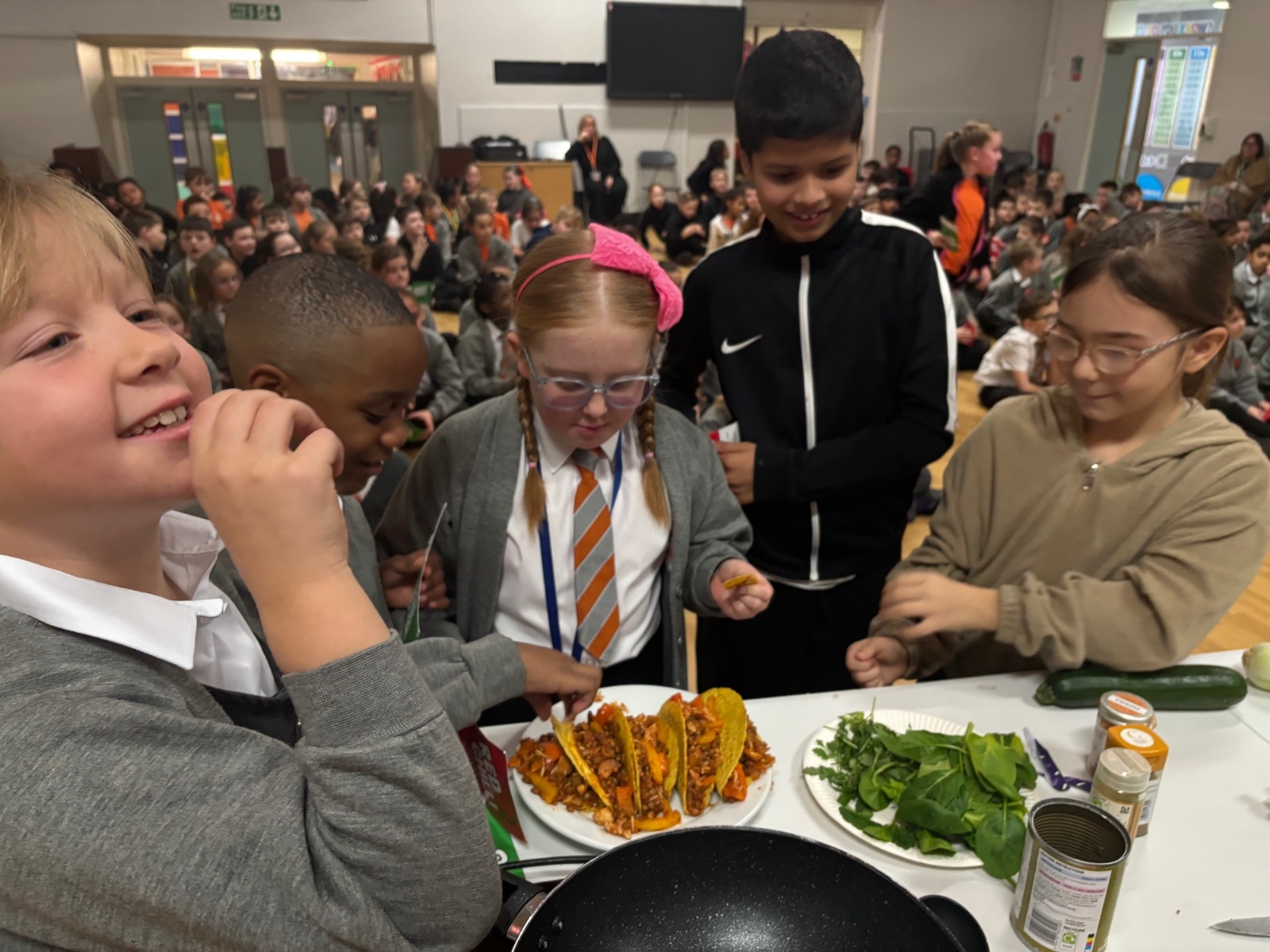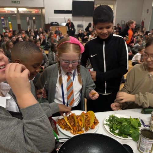 Our KS2 children had a fantastic time at the School Food Showdown! Four teams competed, in two separate rounds, to win the food showdown: cooking a healthy meal from scratch with the items provided. Spectating children then got to vote for their favourite of the two meals, with some children also getting to sample the food! Some of our children were so inspired that they even had a go at cooking the meals at home!
